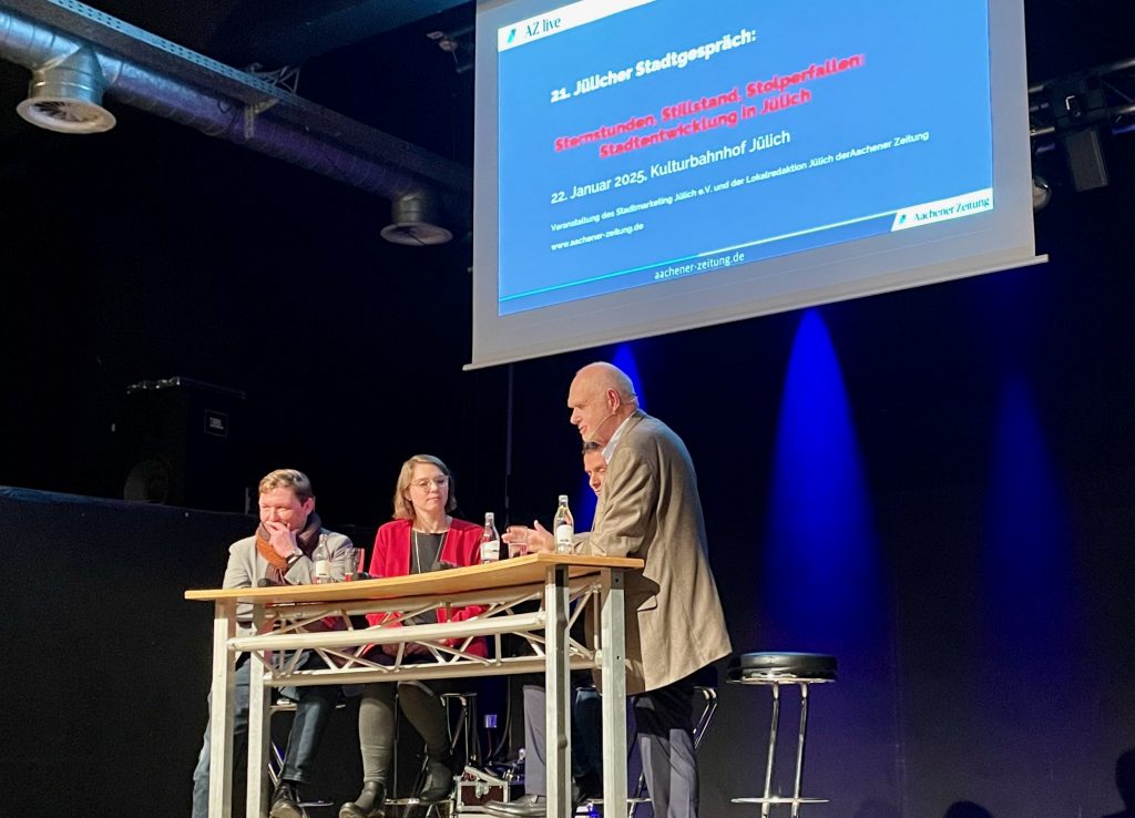 Am Mittwoch, 22. Januar, veranstaltete der Stadtmarketing Jülich e.V. in Zusammenarbeit mit der Jülicher Zeitung zum 21. Mal das Jülicher Stadtgespräch. Das Motto des Abends lautete „Sternstunde, Stillstand, Stolperfallen: Stadtentwicklung