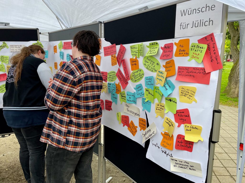 Jülich. Mit einem großen Stand hatte sich die Stadtverwaltung zusammen mit der Planungsgruppe MWM aus Aachen am vergangenen Samstag an der Ecke Kölnstraße / Schlossstraße positioniert um allen interessierten Bürger*innen