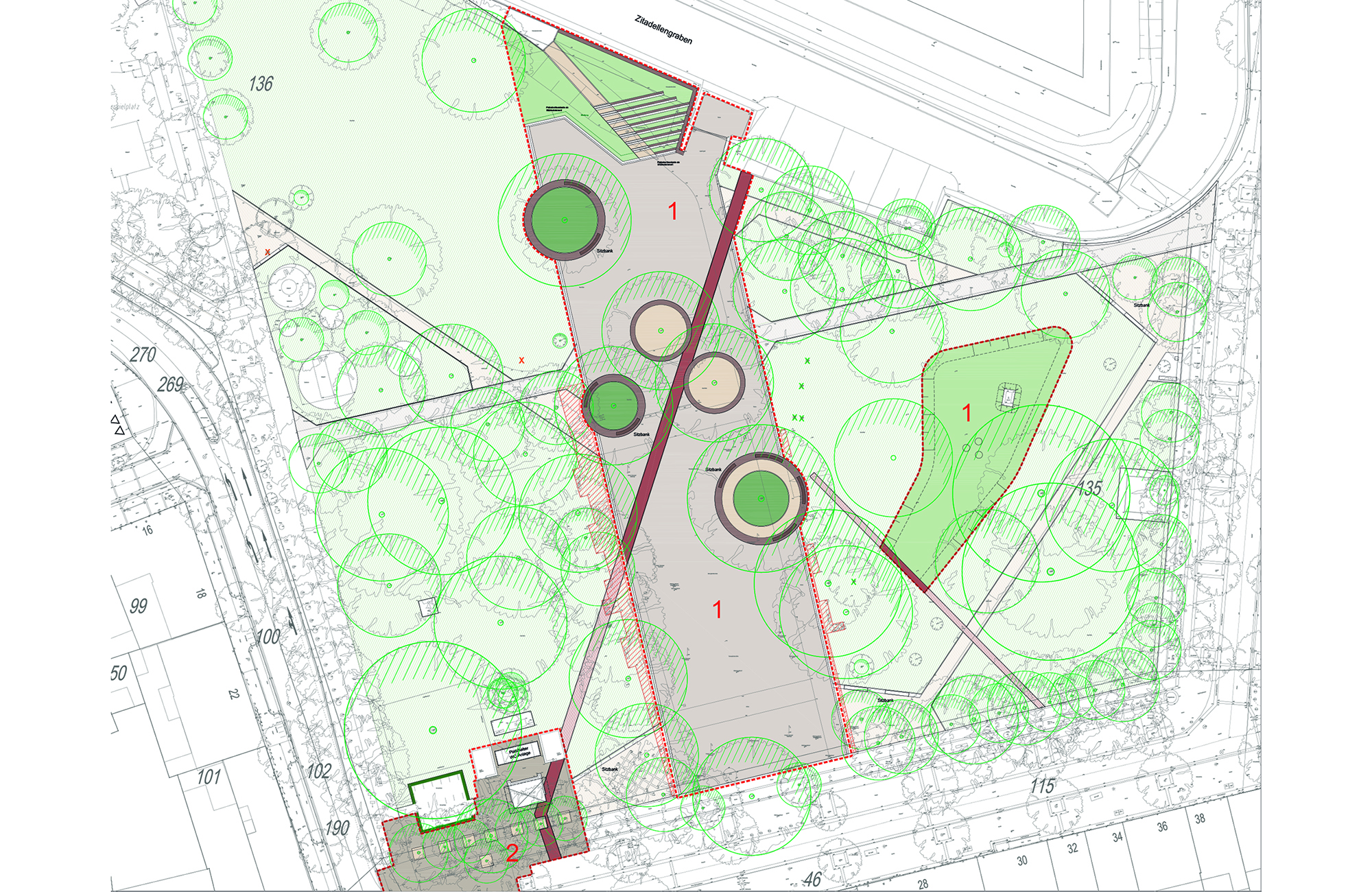 Die für die Umsetzung weiterentwickelte Planung (Gestaltungsplan, Stand Oktober 2024 – vorbehaltlich Anpassungen im Zuge der Bauausführung) können Sie unter „Downloads“ herunterladen.